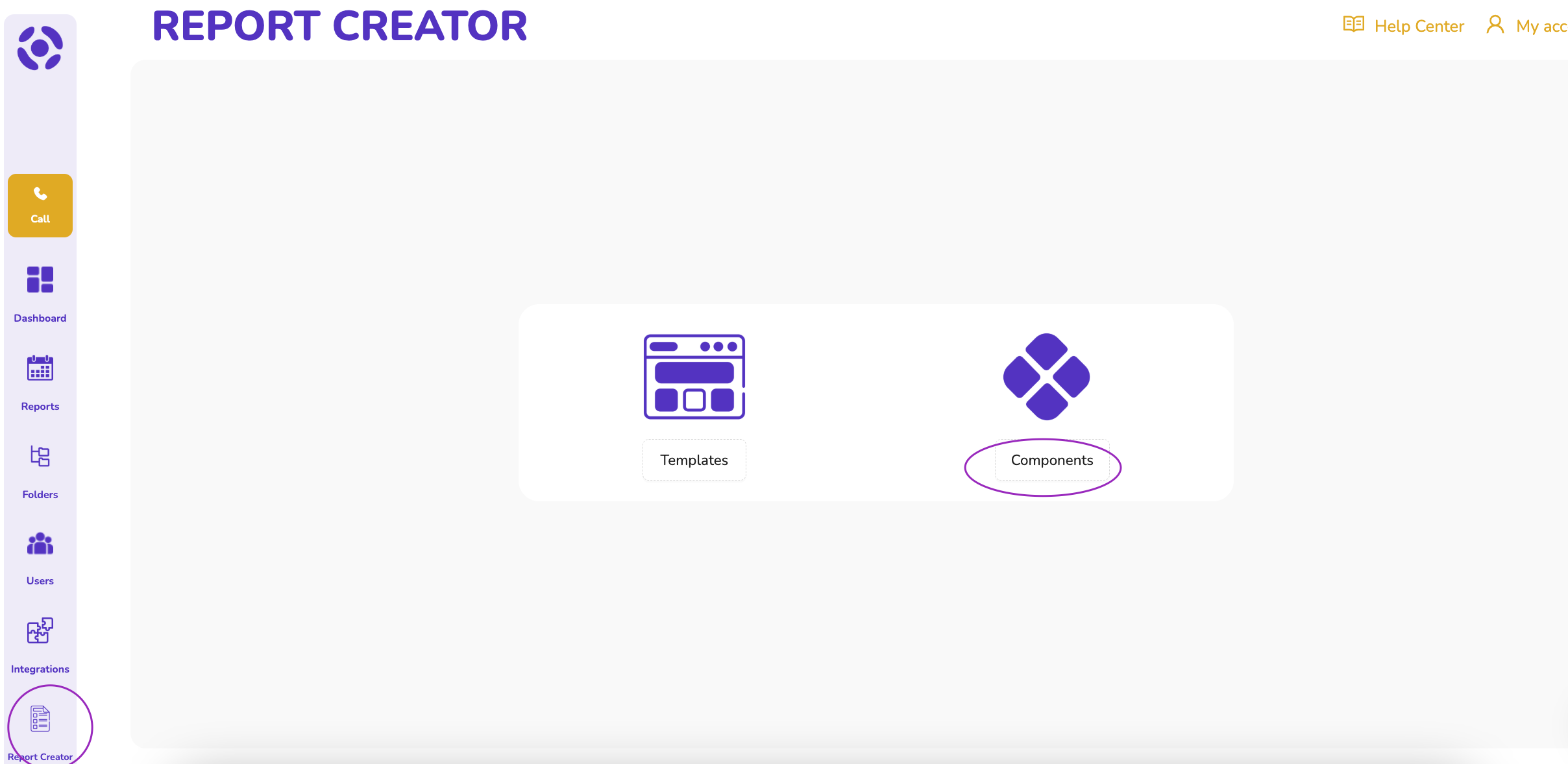 First, go to Report Creator in the left hand menu and click on Components: