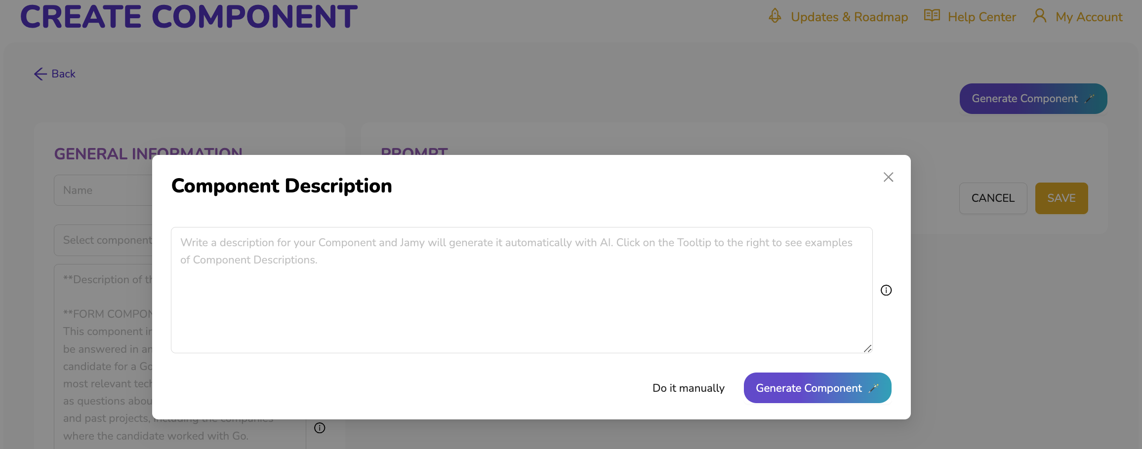 Learn how to use Jamy AI features to automatically create a Component and how to manually create one as well.