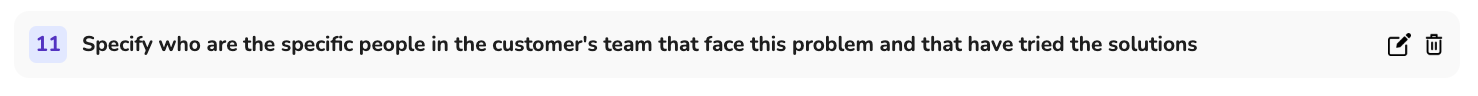 This component evaluates a sales call and identifies the customer's pain points, requirements and necessities. The result of applying this Component to a sales call is a precise, thorough and succinct text that analyses what is the problem the customer is facing, the ways they've tried to solve it, how much they've spent, which tools have they used, for how long have they been trying to solve it, how big of a priority it is to solve this problem and if they already have a budget assigned to solve this problem. This Component not only analyses the call, but it also to reference the specific quotes in the call that we are basing our analysis in.